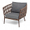 Кресло из искусственного ротанга «Равенна» с плетением вида «гиацинт» обладает крепким алюминиевым каркасом, который вручную обвит ротангом серого оттенка.