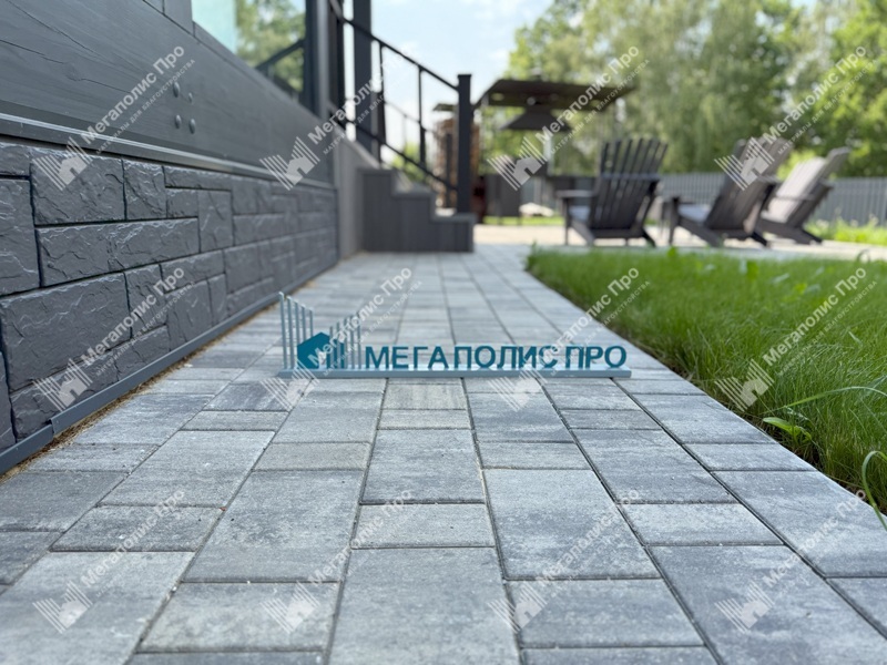 Тротуарная плитка Выбор Старый город Искусственный камень А.1.Фсм.4 40 мм. Шунгит, Тротуарная плитка Выбор Старый город Искусственный камень 1Ф.6 60 мм Шунгит, Металлический бордюр из оцинкованной стали (толщина стали 1,5 мм x2) h50, L1200, b70