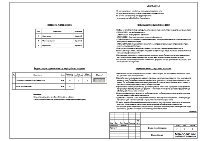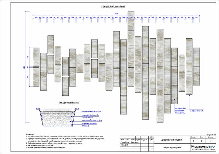 Мы работаем на основании размеров и информации, которые предоставляет заказчик. Этого достаточно, чтобы подготовить схему раскладки плит, определить расстояние между ними и дать рекомендации по обустройству.